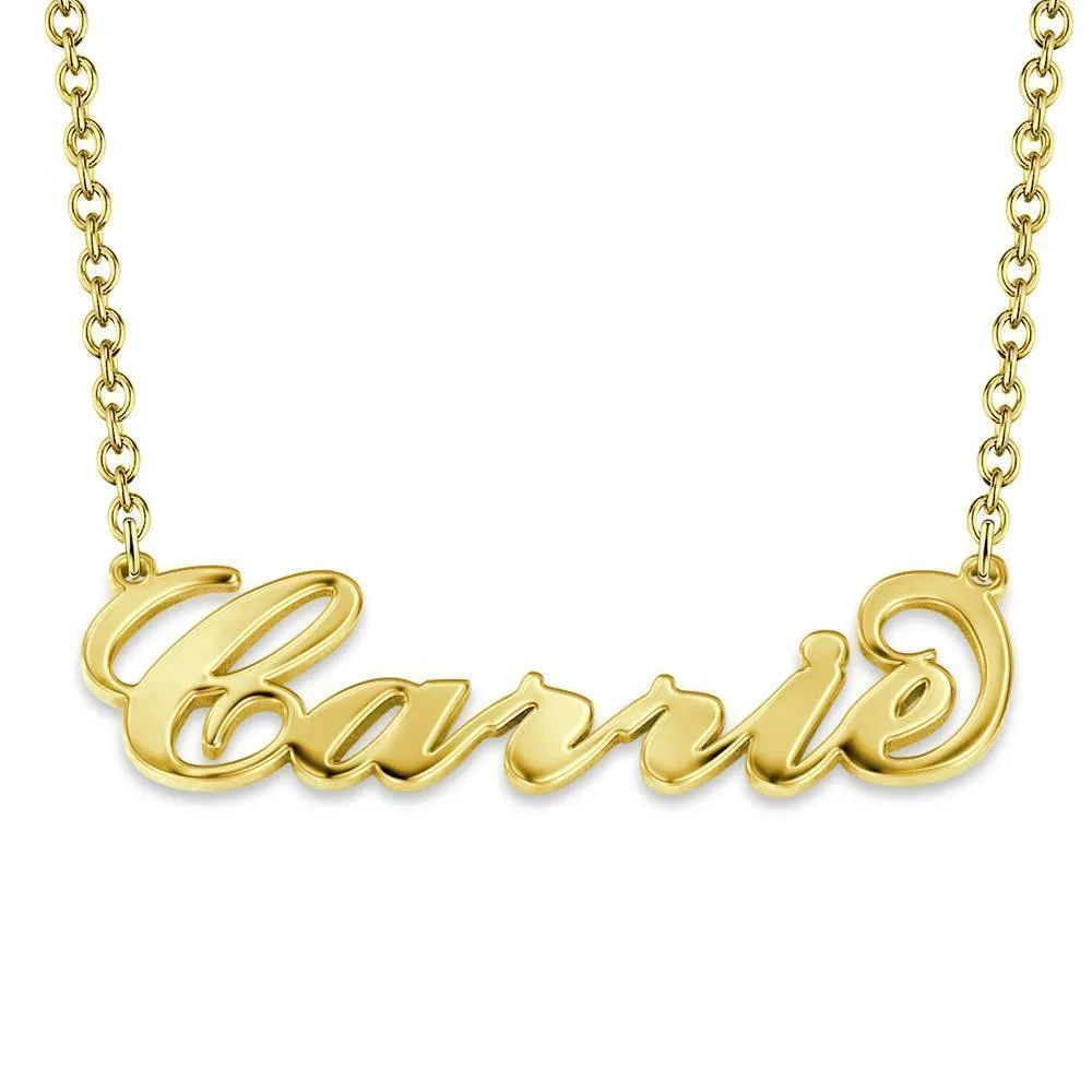 Embrace elegance with our Custom Carrie-Style Name Necklace. Featuring a sleek, black-plated stainless steel finish, this necklace combines modern style with personal flair. Ideal for adding a personal touch to your wardrobe or gifting a loved one, this piece offers a sophisticated look without the high cost of precious metals.