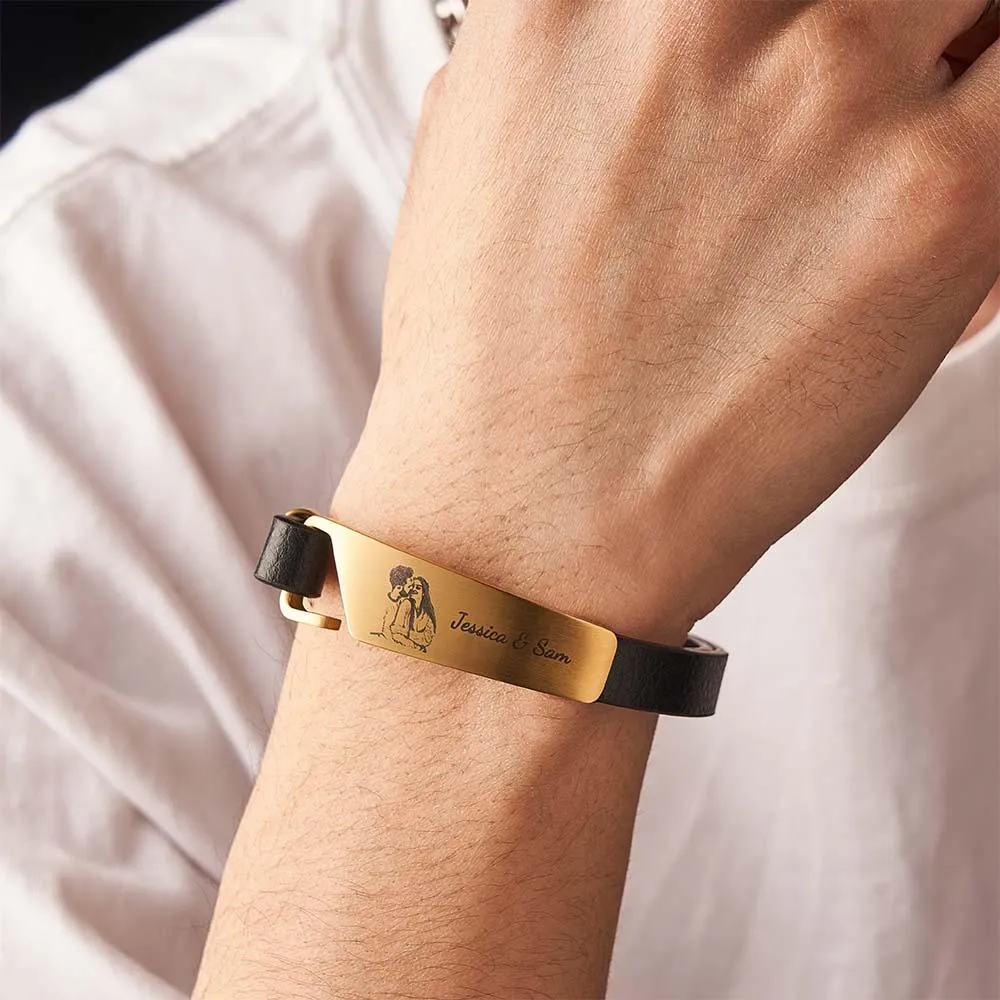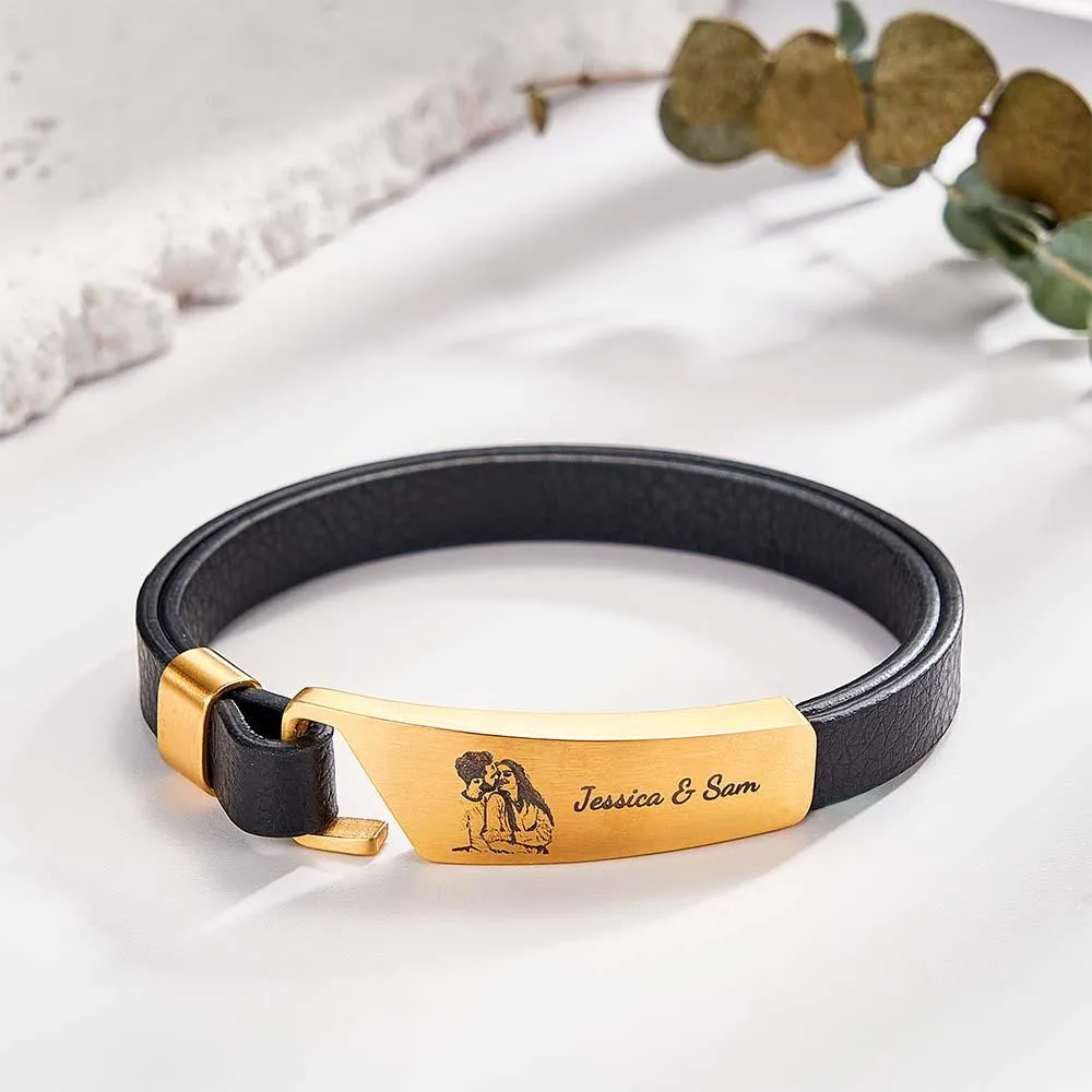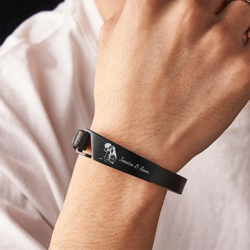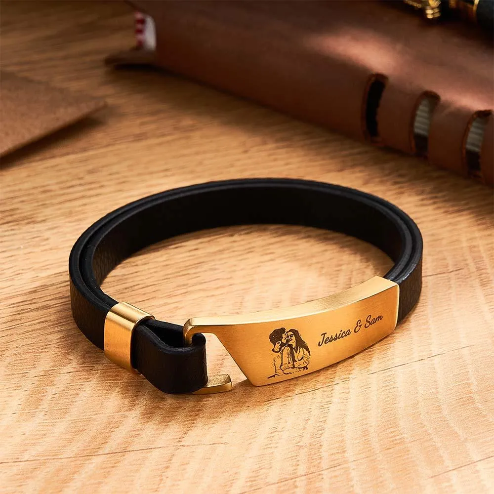 Celebrate personal style with our Personalized Photo and Text Leather Bracelet. Featuring custom photo and text engraving, this bracelet combines classic retro aesthetics with personal touches, making it a standout gift for men who appreciate timeless and unique accessories.