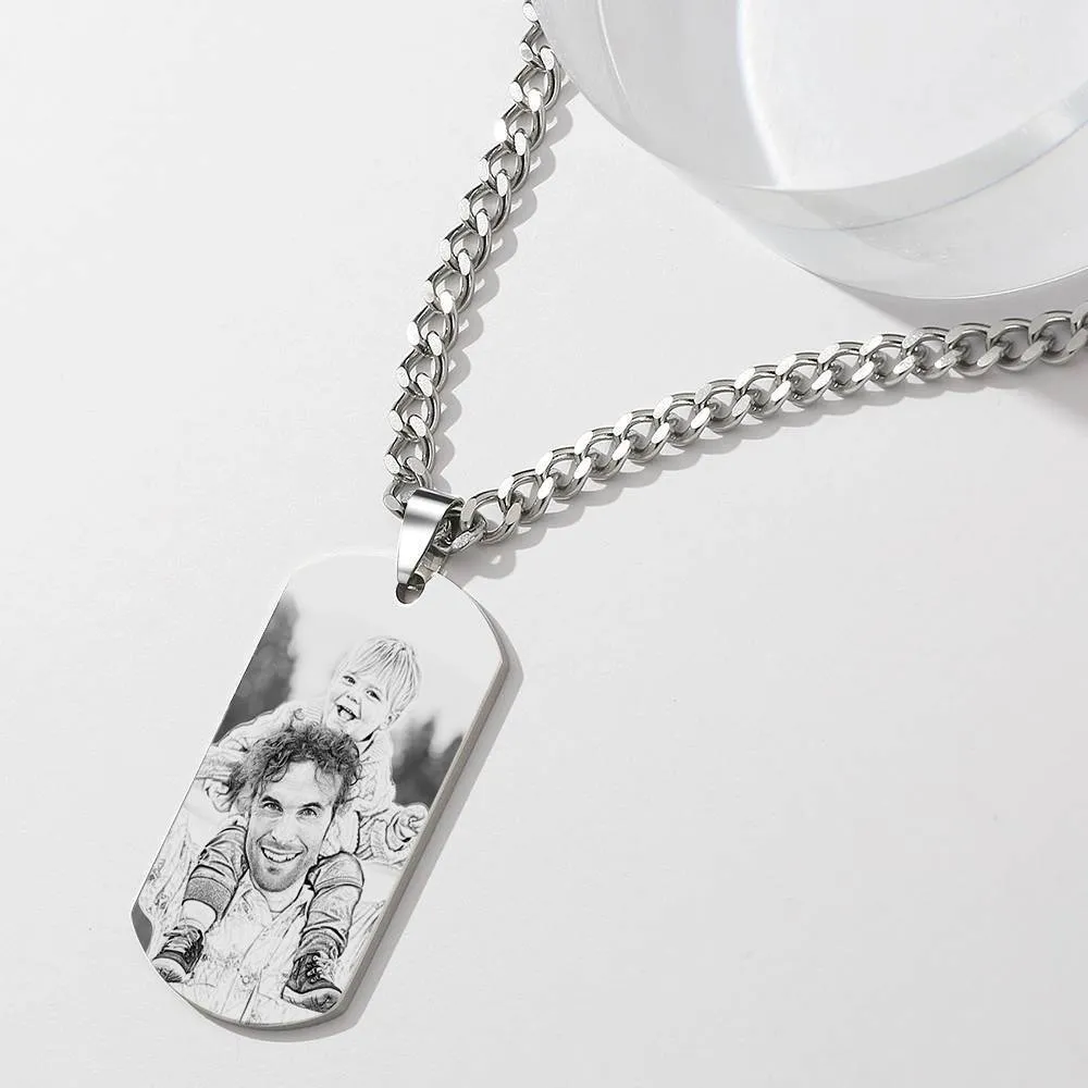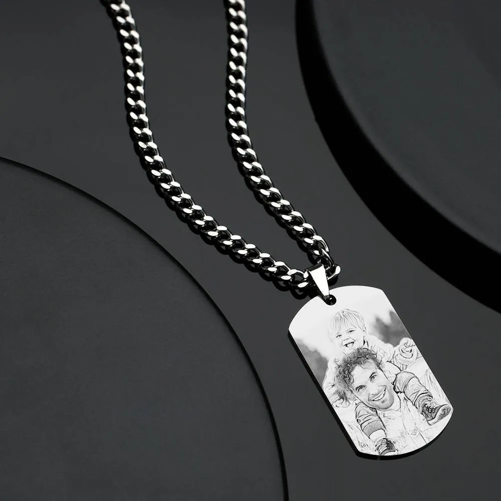 Engraved Photo Custom Necklace for Men – Personalized Gift with Unique Metal Pendant