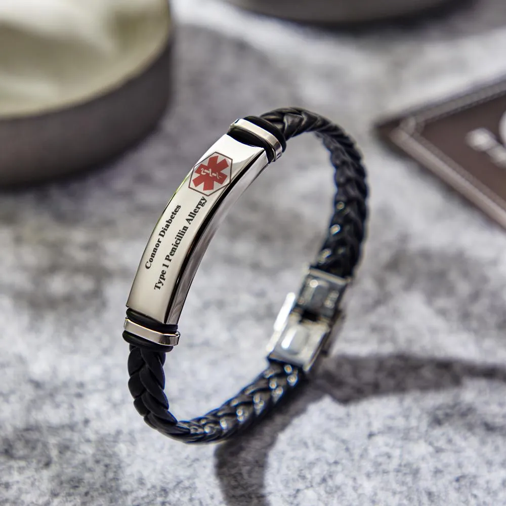 Custom Medical Alert Leather Bracelet – Personalized Emergency ID with Waterproof Features