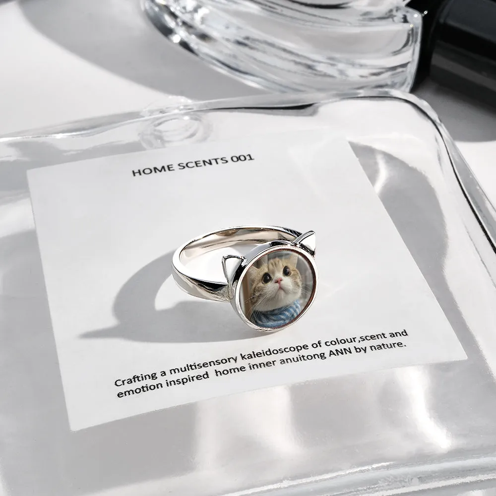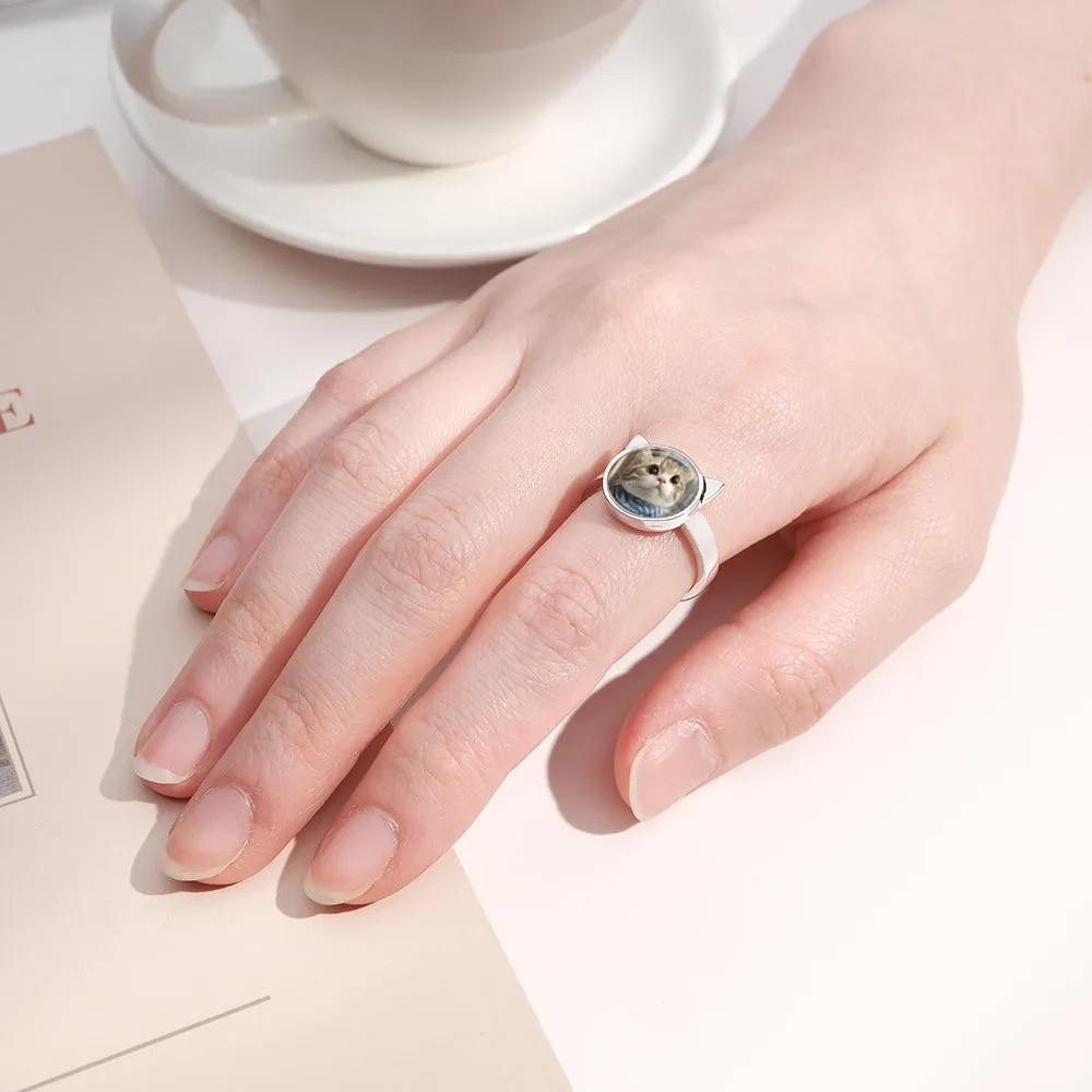 Celebrate your love for your feline friend with the Custom Cat Head Photo Ring. This unique ring features a personalized engraving of your pet's cat head photo, making it an ideal gift for cat lovers or a special keepsake for yourself.