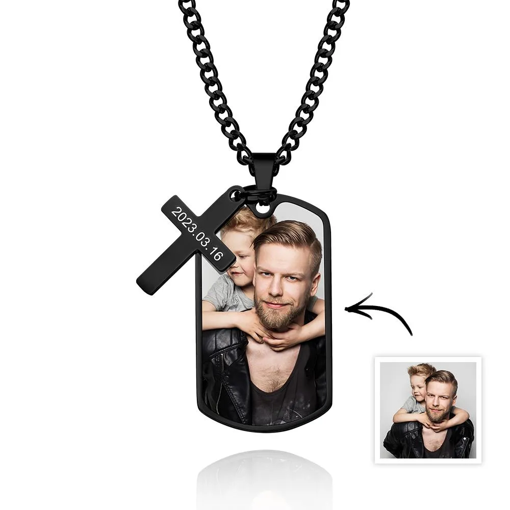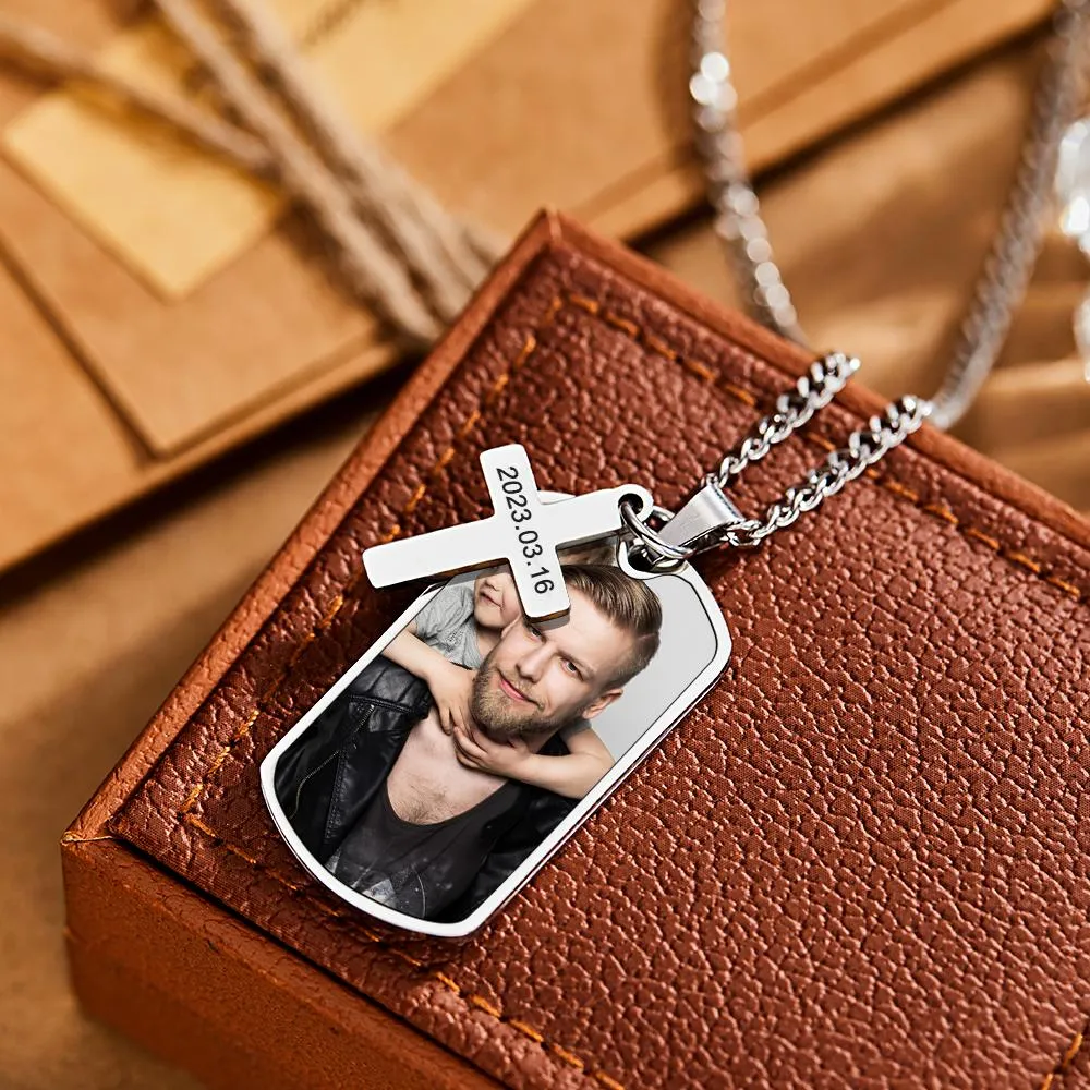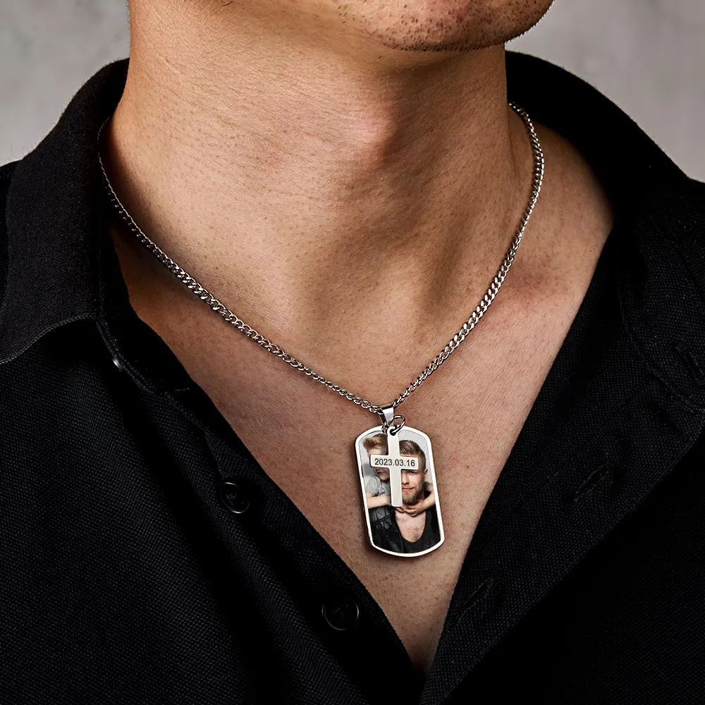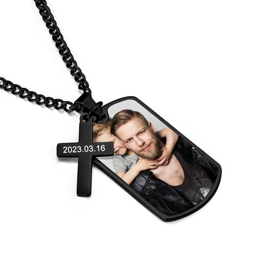 • Custom Photo and Engraving Necklace for Men – Personalized Stainless Steel Gift for Fathers, Boyfriends, and Birthdays