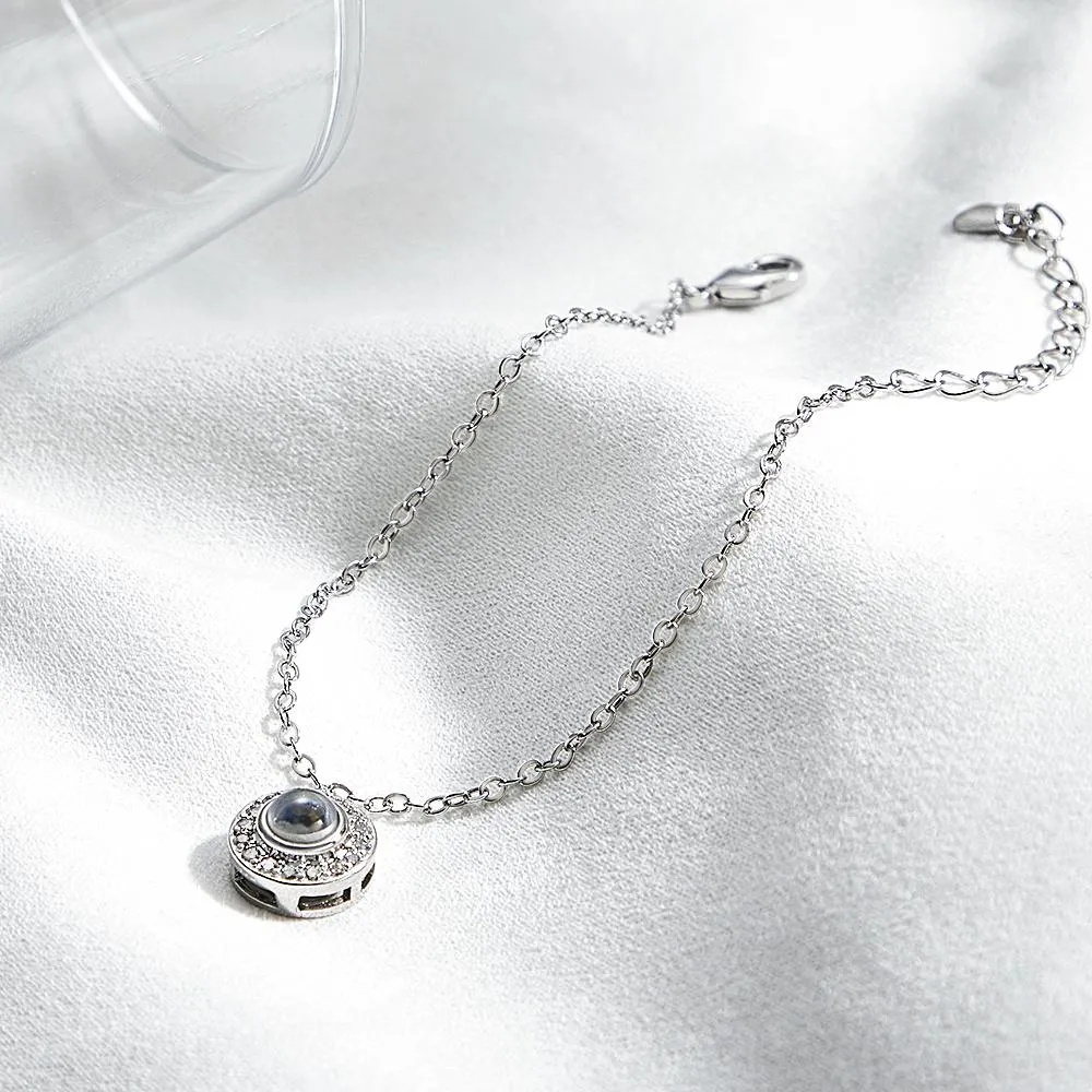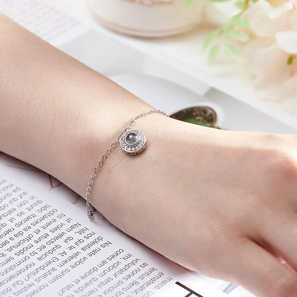 • Elegant Petite Halo Photo Bracelet with Custom Engraving – Memorable Gift for Her