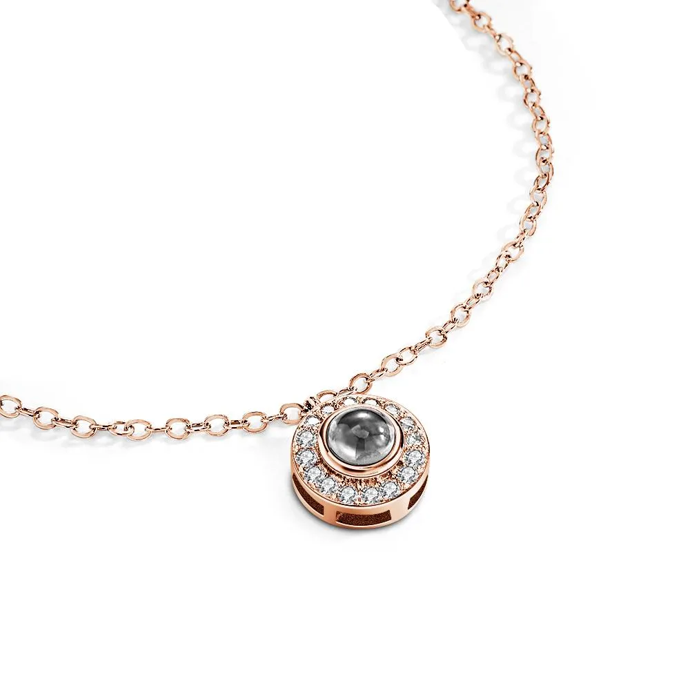 Elegant Petite Halo Photo Bracelet with Custom Engraving – Memorable Gift for Her