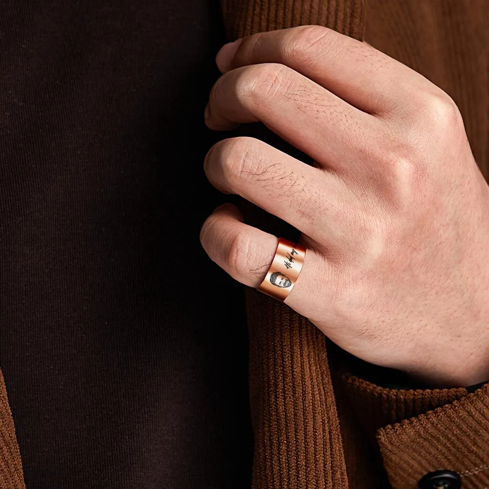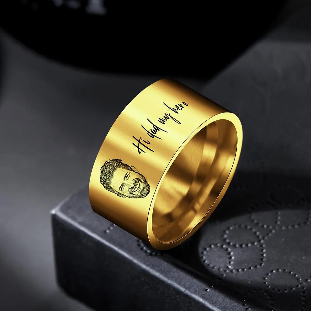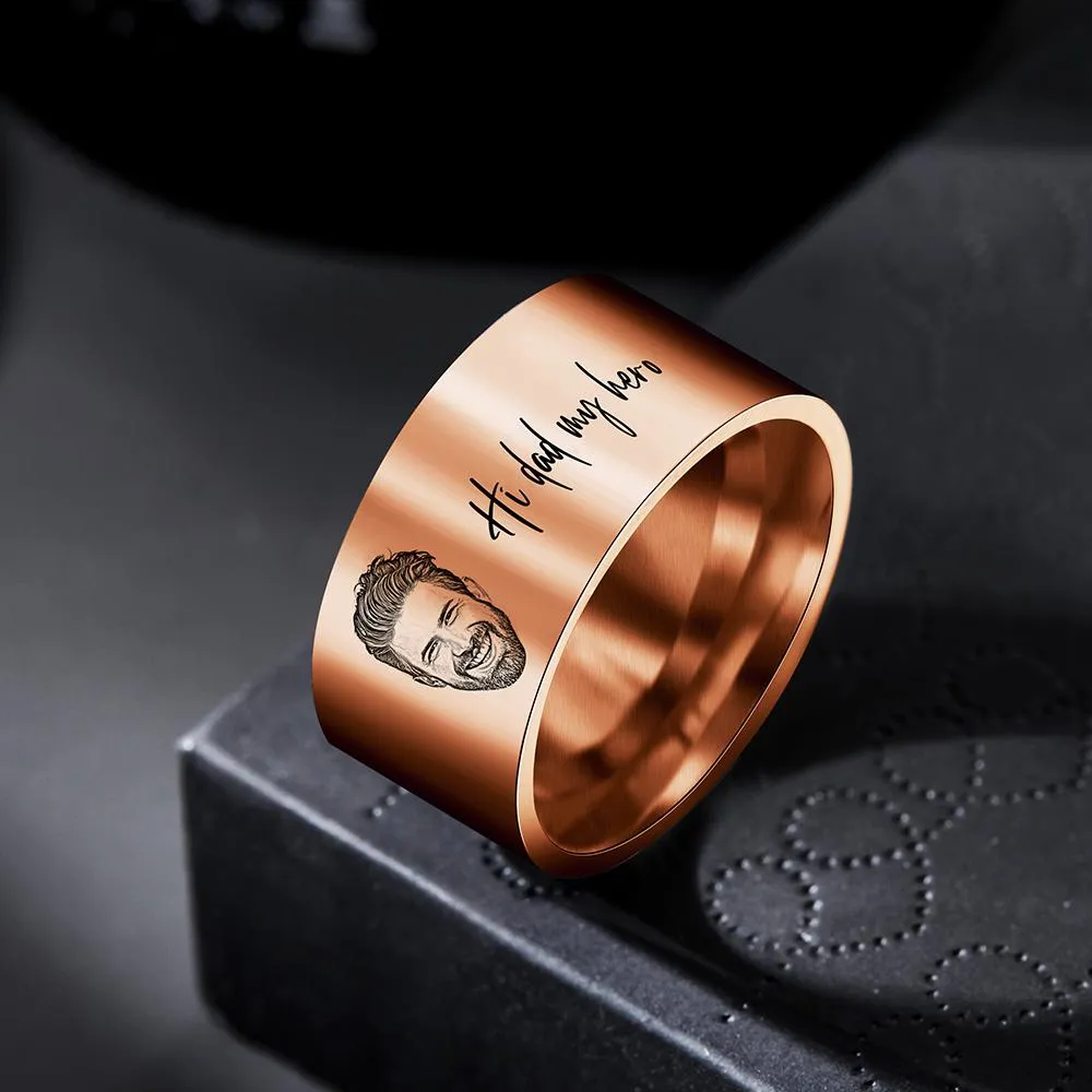 Celebrate Father's Day with a truly special and personalized gift. The Custom Engraved Photo Ring for Men combines a cherished photo and a heartfelt message into one unique piece of jewelry. This custom ring is the perfect way to honor and appreciate the special men in your life.