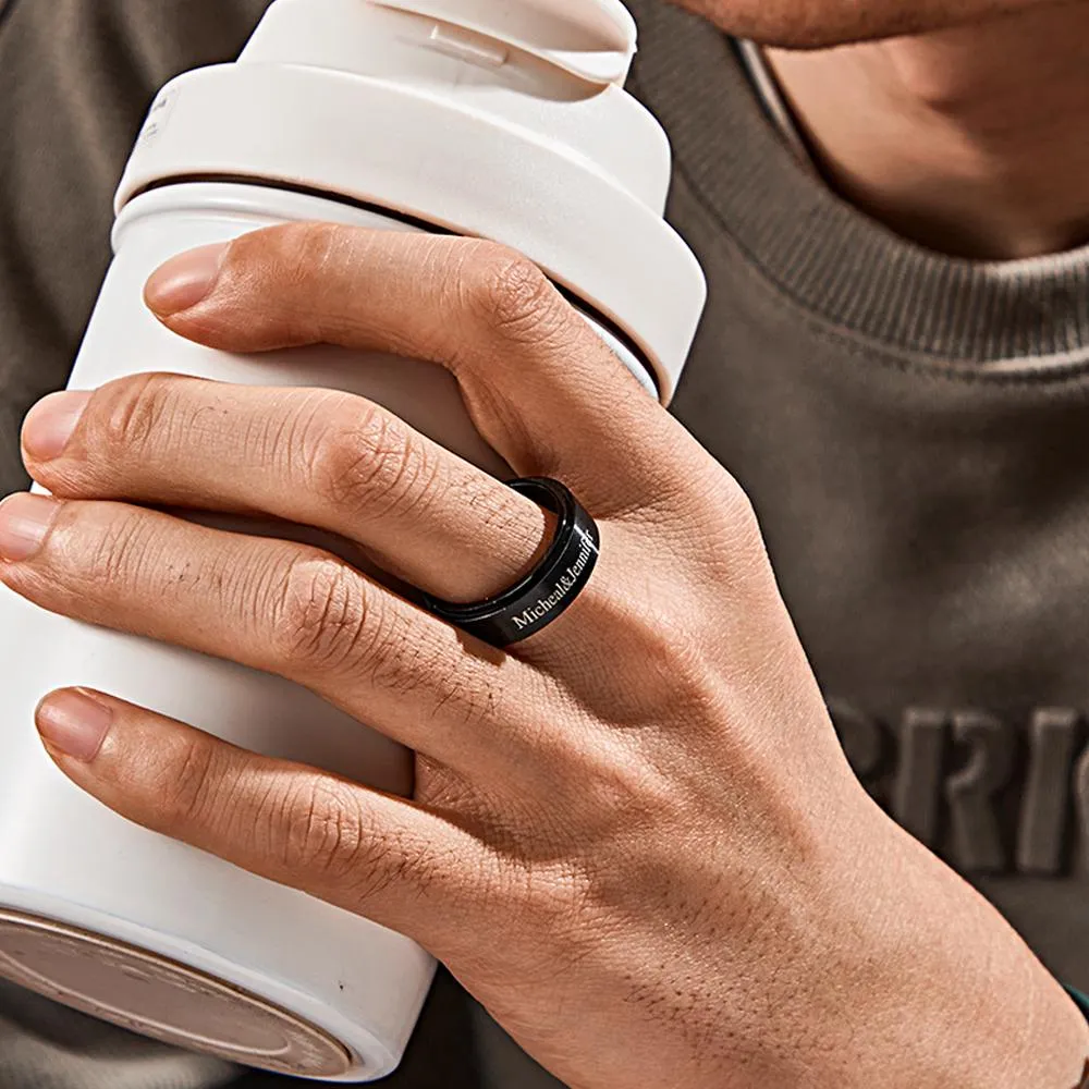 Custom All-Black Stainless Steel Spinner Ring – Personalized Name Ring with Inner Engraving, Ideal Valentine's Day Gift for Him