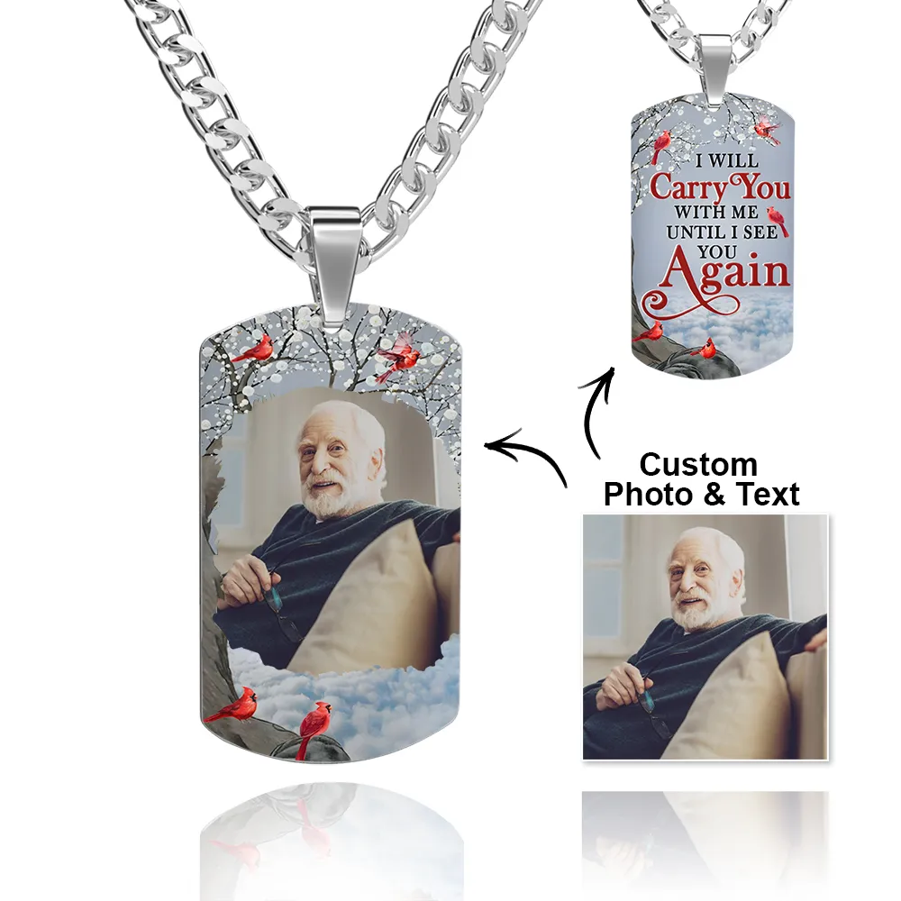 Personalized Engraved Photo Tag Necklace – Custom Stainless Steel Memorial Jewelry for Men