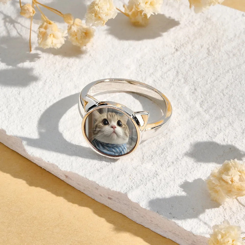 Personalized Cat Photo Projection Ring Whimsical Pet Memory Keepsake