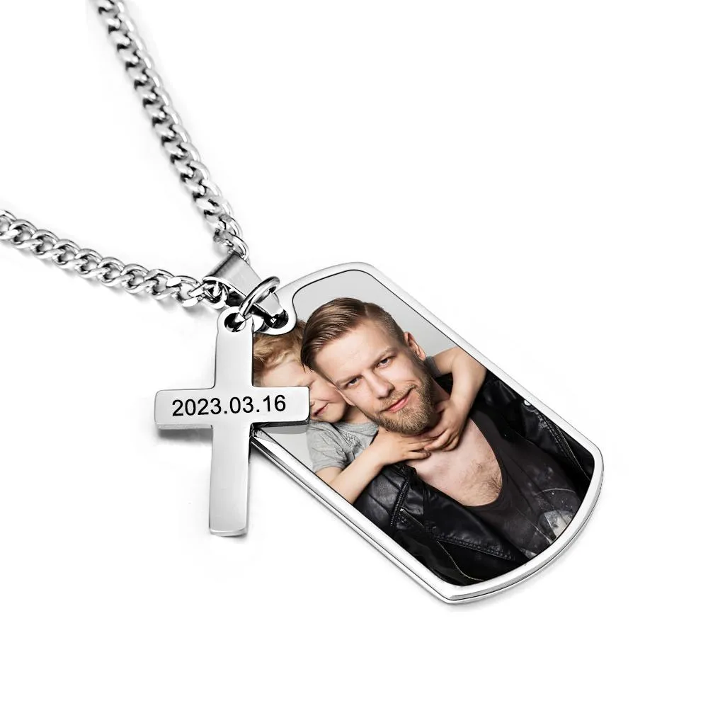 Custom Photo and Engraving Necklace for Men – Personalized Stainless Steel Gift for Fathers, Boyfriends, and Birthdays
