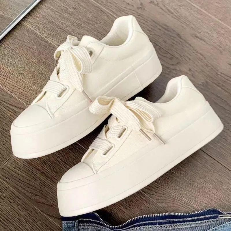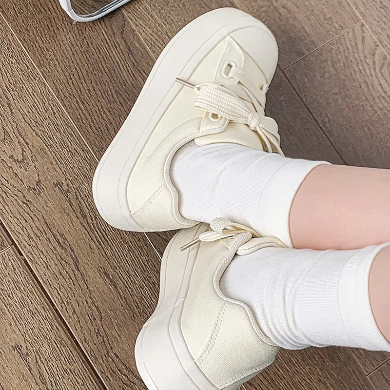 • Platform Canvas Shoes 2023 New Versatile Casual Board Shoes Womens with Skirts and Small White Shoes Lace-up Sneakers Women