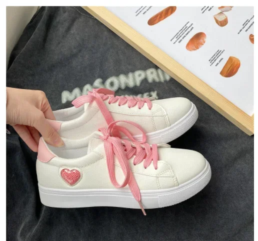 Women's Sneakers Pink Heart Shoes Flat Running for Women Sports Lightweight Casual Breathable Shoes White Tennis Shoes